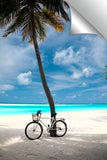 Home»beach»A vertical standard of a bicycle parked against a coconut tree at Gili Lankanfushi, in the Maldives Photographic Print On Canvas By Sean Davey