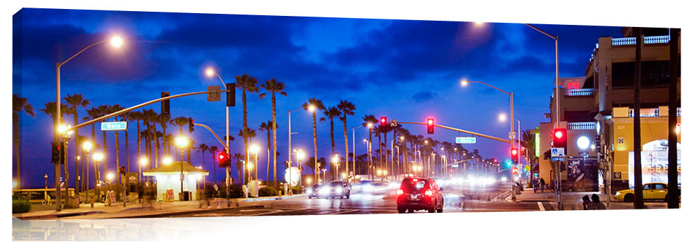 Pacific Coat Highway near Huntington beach, during evening twilight.