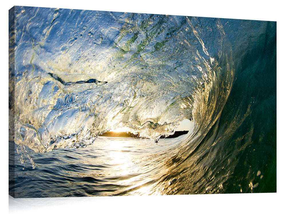 A water photograph inside a curl wave at the wedge, at Newport, in southern California.