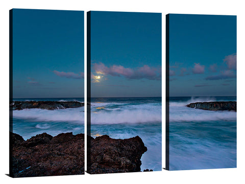 Ocean waves are caused by wind moving across the surface of the ocean water, in the form of a moving ridge or swell.