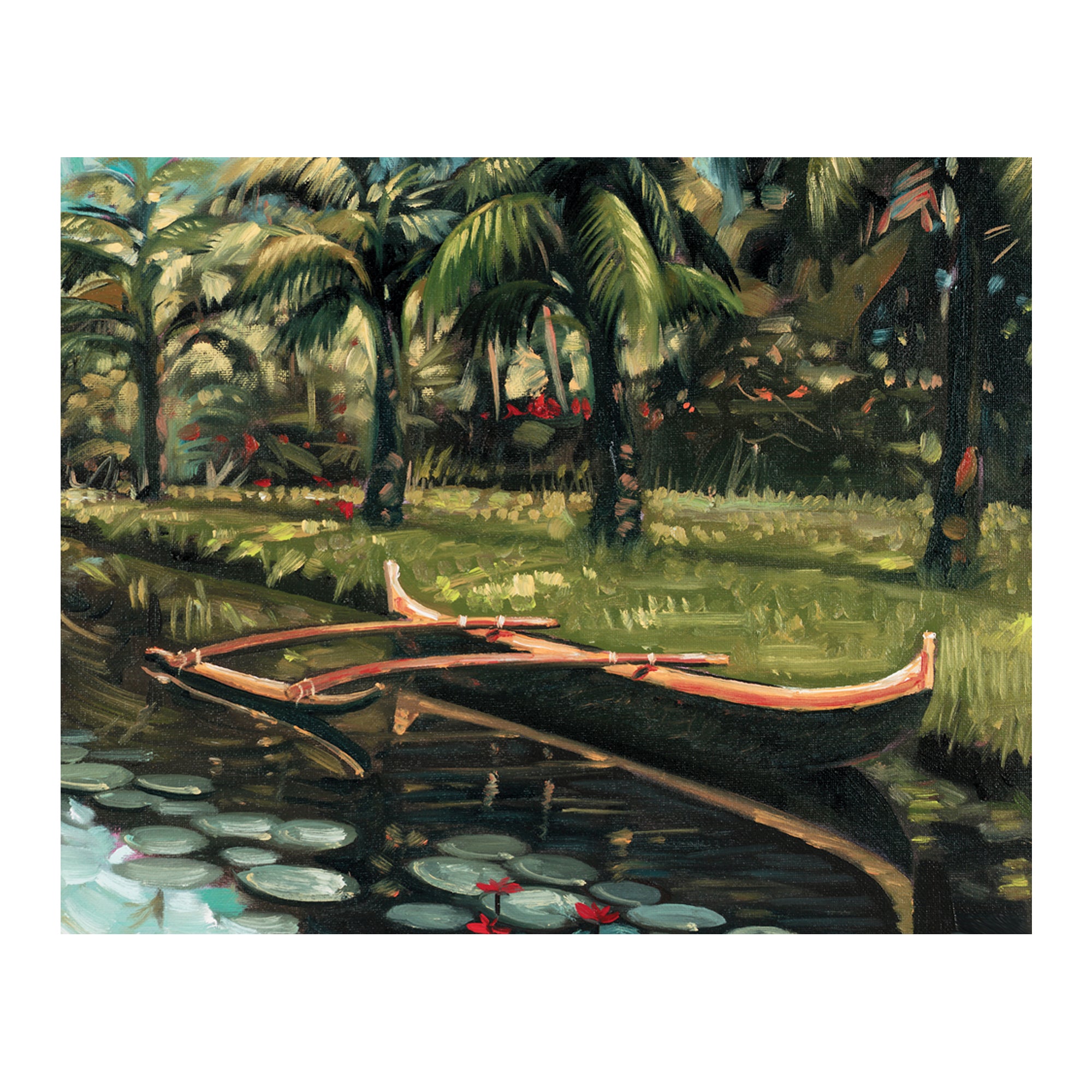 Ample Parking is an artwork of a wooden canoe parked on the side of a river. Ever had that adventure of riding one? Wooden canoe is a staple vessel of fishermen to catch fish whether in sea or river. It is paddled manually and requires a lot of physical work. It symbolizes hard work and slow paced living. Like when you try to ride a canoe on a river in Vietnam, Thailand or Philippines, the slow motion of the boat makes you enjoy all the tropical scenery and relax in the moment. This is an artwork that will remind that it's good to take your slower and enjoy the walk of life. Looking forward to that next vacation on an island and just taking your time riding one enjoying clear waters and blue sky with the wind breeze brushing your face. The smell of the grass on the river side and the friendly people who will take you into a tour around the place.