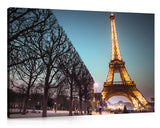 Canvas Prints of Paris The Eiffel Tower is a wrought iron lattice tower in Paris. It is named after the engineer Gustave Eiffel, whose company designed and built the tower. Over the years, the Eiffel Tower has been the site of numerous high-profile stunts, ceremonial events and even scientific experiments. Now one of the most recognizable structures on the planet, the Eiffel Tower underwent a major facelift in 1986 and is repainted every seven years. It welcomes more visitors than any other paid monument in the world, an estimated seven million people per year. Some five hundred employees are responsible for its daily operations, working in its restaurants, manning its elevators, ensuring its security and directing the eager crowds flocking the tower’s platforms to enjoy panoramic views of the City of Lights. After sunset, the Eiffel tower sparkles and bathes in golden light to welcome its night time visitors and offers a breathtaking view of the Paris lights. Today, the Eiffel Tower has become a global icon of France, which an iron tower is built on the Champ de Mars beside the River Seine in Paris. The tower can sway 6 to 7cm in the wind and due to the thermal expansion of the metal on the side facing the sun, depending upon the ambient temperature, the top of the tower may shift away from the sun by up to 18cm. Although most people have the idea that the Eiffel Tower can be seen from almost anywhere in Paris, this is actually not the case, due to restrictions in place that limit the height of most buildings to only a few storey so there are only a few of the taller buildings that get a clear view of the tower. More than 250 million people have visited the tower since it was completed in 1889. The tower is the most-visited paid monument in the world. Averages of 25,000 people ascend the tower every day which can result in long queues.